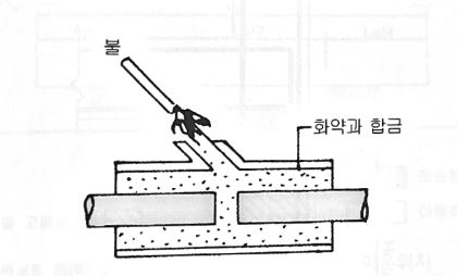 철근에 슬리브를 끼워 연결하고, 철근과 슬리브 사이의 공간에 순간 폭발을 발생시켜 합금을 녹여 흘러보내 충전하여 잇는 방법이다. 기후의 영향을 적게 받으며 용접이음에 걸리는 시간이 짧으나 잇는 철근의 규격이 다른 경우 사용할 수 없다,