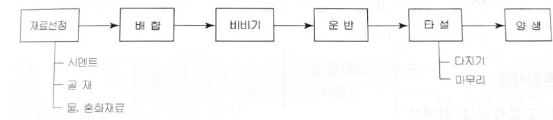 콘크리트 생산에 필요한 재료는 시멘트, 골재, 물, 혼화재료 등이다. 콘크리트의 품질은 구성재료의 영향을 많이 받기 때문에 재료의 품질이 좋아야 한다.