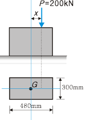 60. 그림과 같은 하중을 지지하는 단주의 단면에서 인장력을 발생시키지 않는 거리 의 한계는?