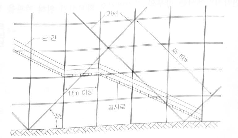 - 작업자의 추락 및 재료 등의 낙하를 방지할 수 있도록 안전상 결함이 없을 것