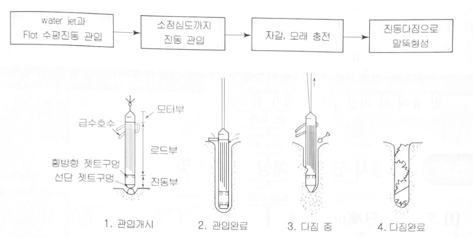 특수 파이프를 관입하여 모래를 투입하고 이것을 해머의 충격 또는 진동으로 케이싱 속 모래를 지반 속에 쳐놓고 다져서, 밀도가 높은 모래 말뚝을 형성하고 주위지반을 압밀함으로써 강고한 지반을 구축하는 공법이다. 사질토와 같은 비 점토성 연약지반 개량과 점착성 연약지반의 개량에 적용된다.